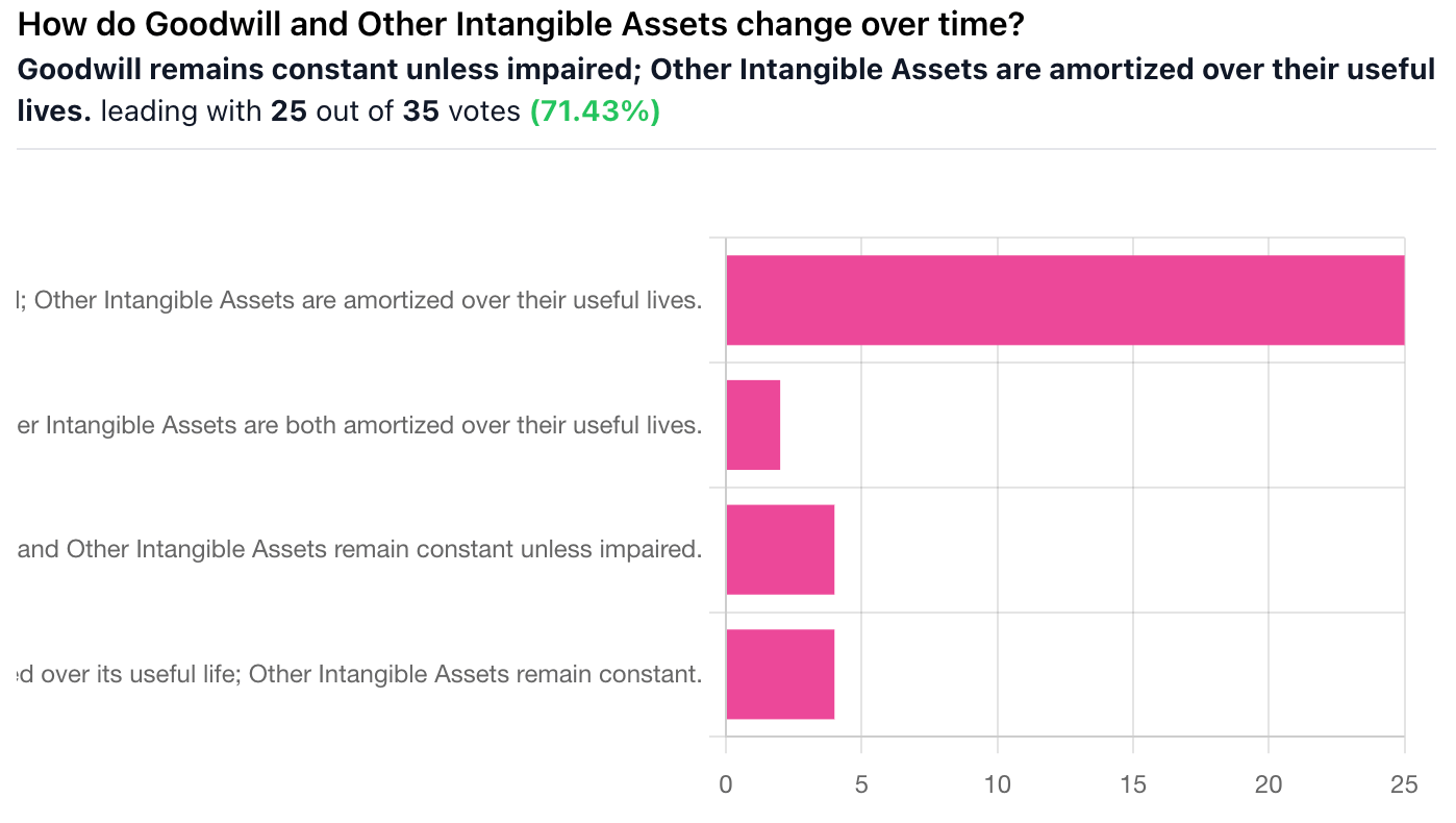 Correct Answer: A, Goodwill remains constant unless impaired; Other Intangible Assets are amortized over their useful lives. — How do Goodwill and Other Intangible Assets change over time?